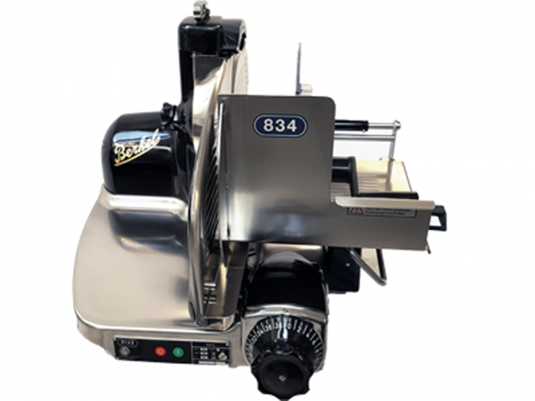 Die bewährte, legendäre fast unschlagbare Edelstahl-Präzisions-Schneidemaschine Typ 834-S in schwarzer Ausführung mit extrem ruhigem Lauf, kräftigem Antrieb, rollengelagertem, abkklapp-und abnehmbarem Schlittentisch, integriertem Schleifapparat, Präzisions- Feineinstellung für das Schneiden hochwertigster Produkte