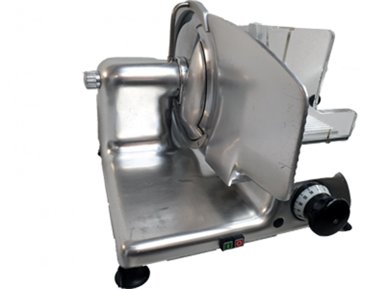 die zuverlässige, bewährte Universal-Senkrecht-Schneidemaschine Typ Bizerba VS5 gebraucht, in instandgesetztem Zustand mit Gewerbe-Unfallschutz, in nahtlos verarbeitetem eloxiertem Aluminium, älteres Baujahr, aber technisch in gutem Zustand, mit supergeschärften Gebrauchtmesser, leichtes Handling und ein perfekter Schnitt, der Abstreifer fehlt, ist aber nicht zwingend erforderlich, der Restehalter ist ohne Riffelplatte