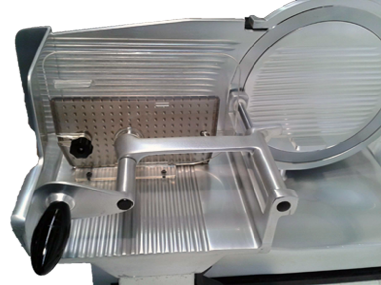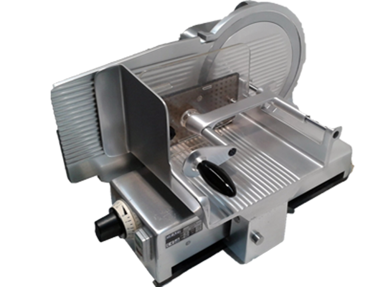 reparierte, gebrauchte Senkrecht-Schneidemaschine Typ Graef Euro3002 in eloxiertem Aluminium, nahtlos verarbeitet, mit leichten Gebrauchsspuren, technisch ok, mit supergeschärften Gebrauchtmesser, abnehmbarem Schlittentisch
