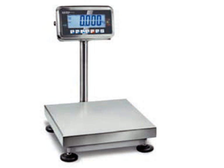 Eichfähige Plattformwaage Typ Kern IFB in Industriequalität, Auswertegerät mit LCD-Display und 52 mm hohen Ziffern, Plattformen 30 x 24cm, 30 x 40cm und noch größer, Standard-Wägefunktionen mit Mehrfach-Tara, summieren von Gewichtswerten usw., auch fertig geeicht lieferbar