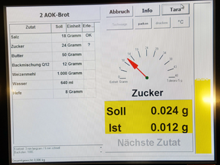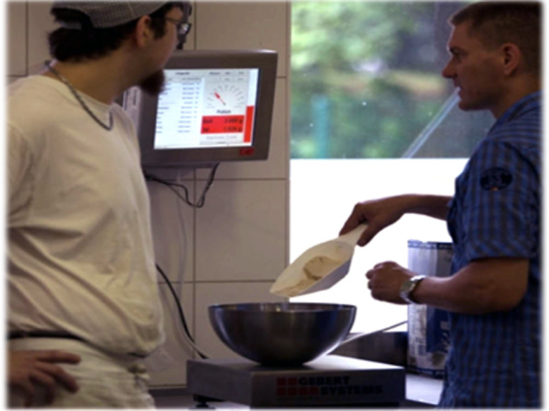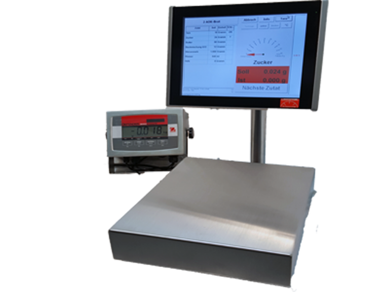 Die Rezepturwaage Typ RezeptaLibra besteht aus einem Touch-PC-Terminal mit Staub und Spritzwasserschutz nach Industrieschutzart IP-65 mit angeschlossener Wägeplattform zum exakten Abwiegen gespeicherter Rezepturen, nach Erstellung eines Aufgabenheftes für die tägliche Bedarfsmenge verschiedener Produkte werden entsprechend der programmierten Rezepturen die dafür benötigten Zutatenmengen automatisch errechnet und fehlerfrei abgewogen