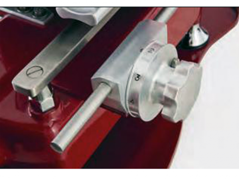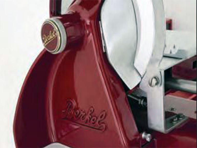 Neue, manuelle, mechanische Schwungrad-Schneidemaschine Typ Berkel B2 nach historischem Vorbild des legendären Van Berkels Patent in rot oder schwarz lackiert, mit vollem Schwungrad, zum Schneiden hochwertiger Schinken- und Wurstprodukte mit einer maximalen Größe von 15 x 19 cm geeignet, mit integriertem Schleifapparat, hochwertige Verarbeitung